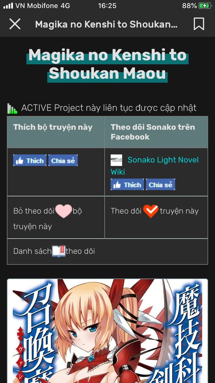 Các bạn lưu ý chọn phần nào có ghi tên bộ truyện và ở đoạn chữ nhỏ có ghi "in Sonako Light Novel Wiki" để tránh bị nhầm sang trang khác nhé!! Sau khi chọn ta sẽ được hình sau: