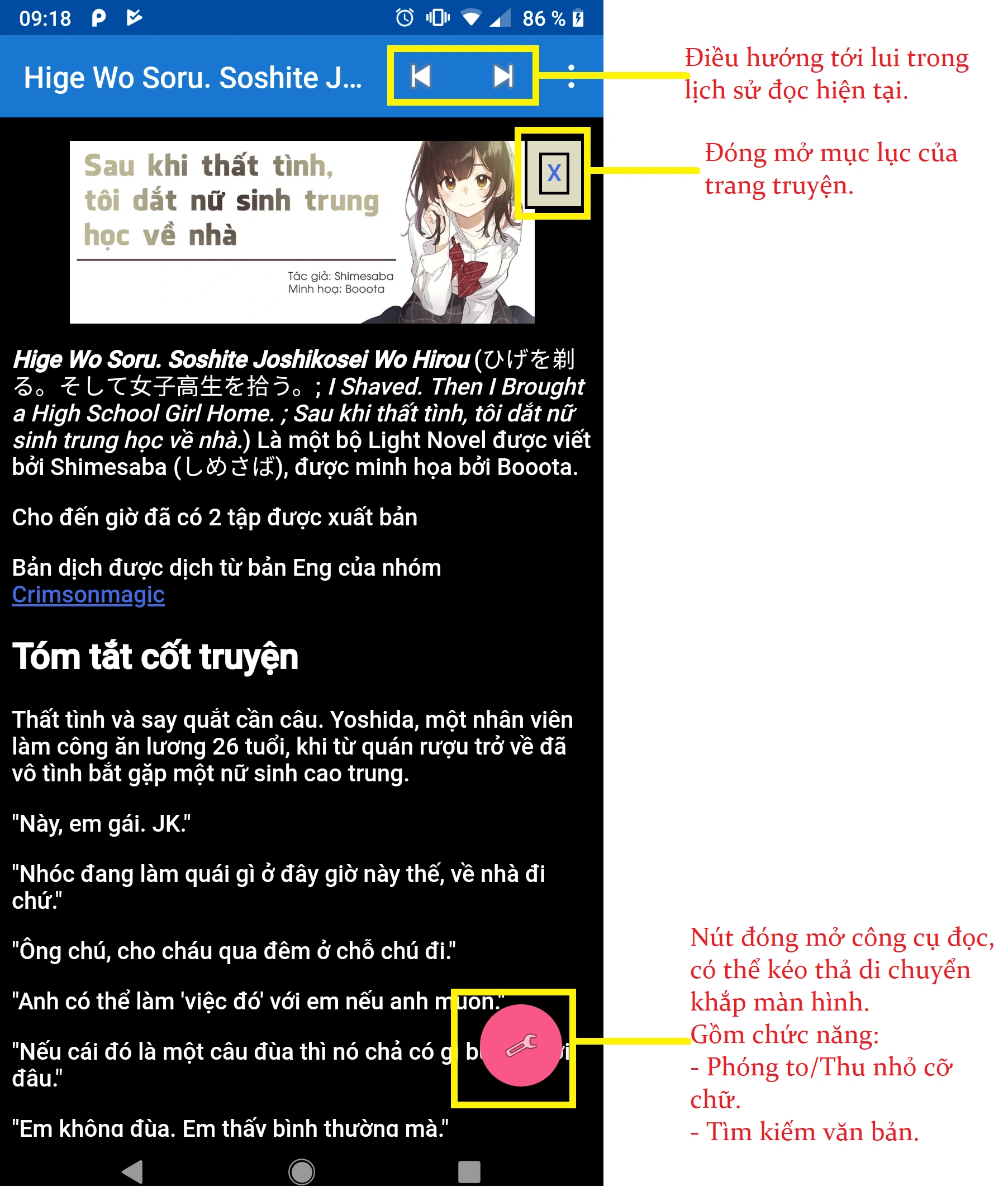 Sonako Light Novel Wiki, hay gọi tắt là Sonako, trước đây dựa trên các trình duyệt hoặc EveryWiki để đọc truyện dịch trên điện thoại. Mặc dù EveryWiki đã có hỗ trợ hệ thống cache để đọc khi không có mạng, nhưng điểm yếu là nếu có mạng thì sẽ liên tục tải lại trang mới nhất, làm lãng phí nguồn tài nguyên quý giá, nhất là những ai dùng 3G-4G. Vì thế, sau bao năm tu luyện, Phẹt mỗ nay mạn phép xuất lò một app Android con con, cho phép mọi người tải và đọc offline truyện của Sonako trên điện thoại. Điểm mạnh của app là tổ chức có hệ thống các Project của Sonako và tải truyện với chất lượng cao nhất nhưng tốn ít tài nguyên nhất. Để tải app về, các bạn tìm trên CHPlay với từ khóa "Sonako Reader". Dưới đây là hướng dẫn sử dụng cơ bản của cơ bản cho phiên bản đầu tiên, Genesis. Và còn rất nhiều tính năng khác chờ bạn khám phá.