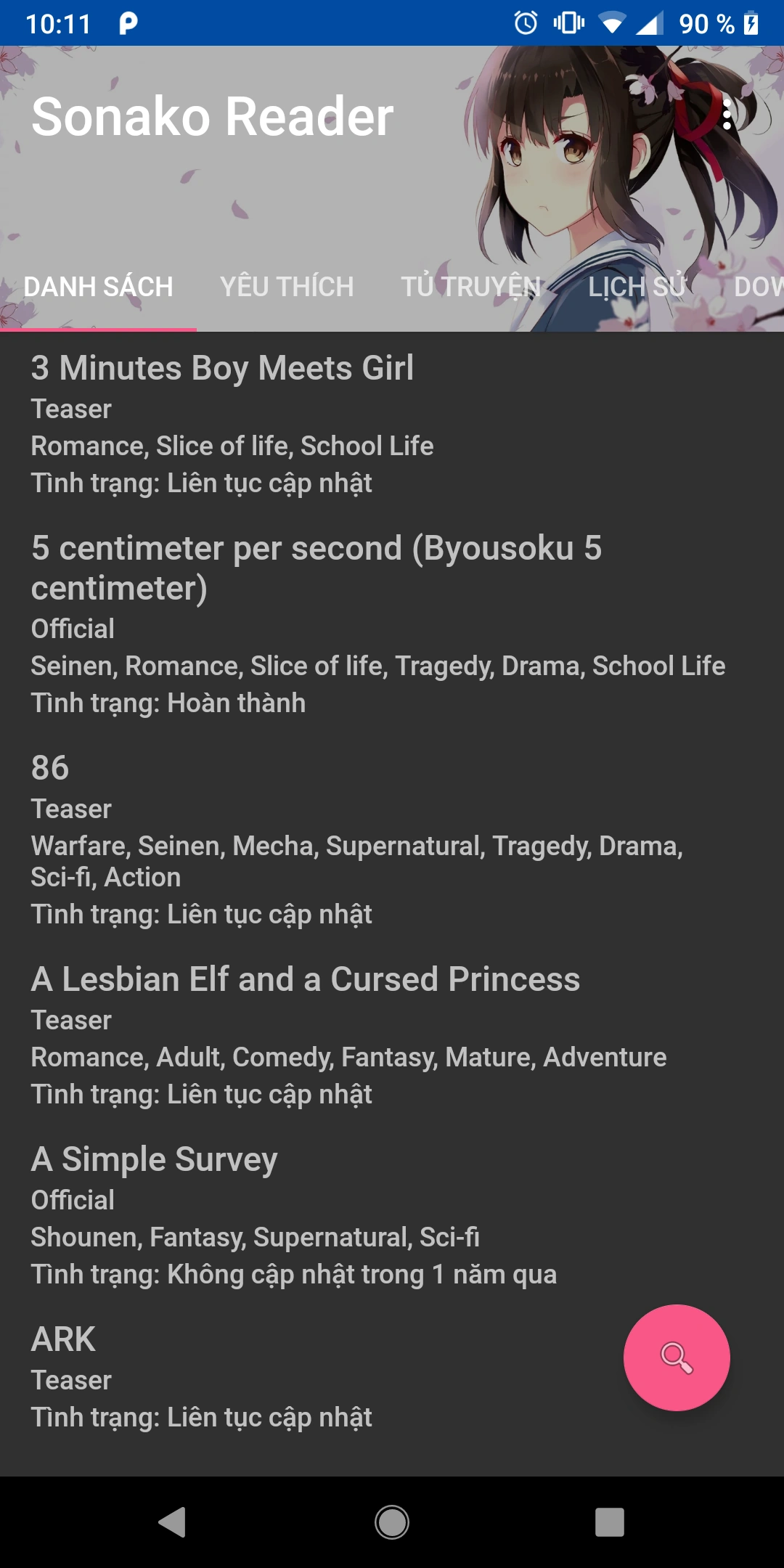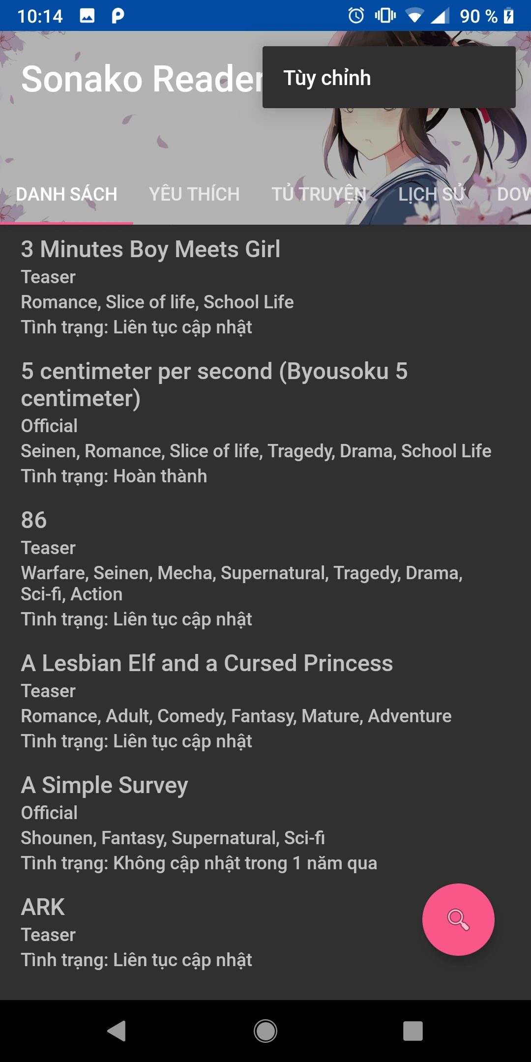 - Yêu thích: Đường tắt để mở nhanh những truyện thích đọc.