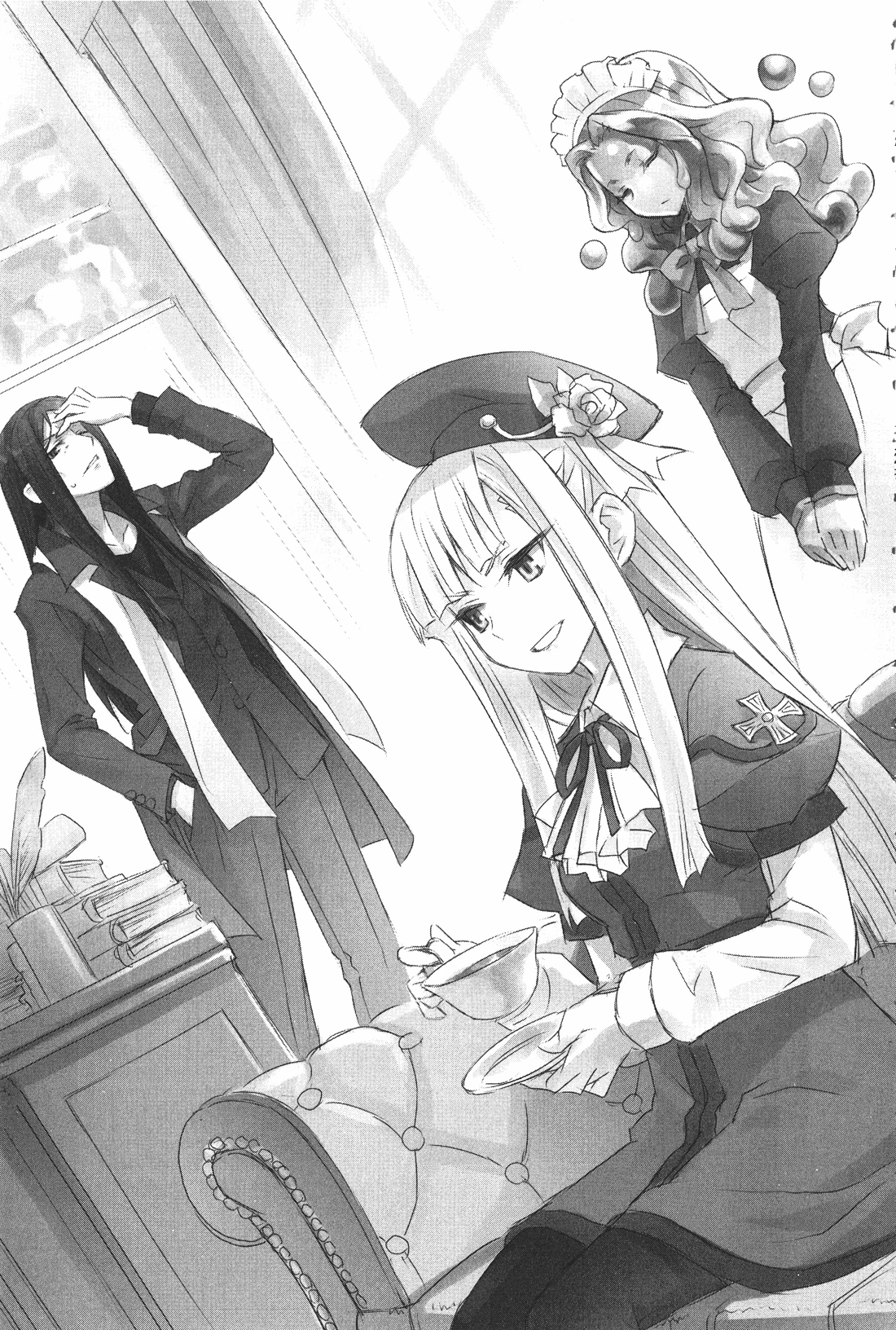 Thắc mắc đã được giải đáp, Sieg liền uống cà phê một cách thỏa mãn. Nhìn thấy thế, Ruler cúi nhìn xuống vẻ ngượng ngùng và thì thầm một mình.