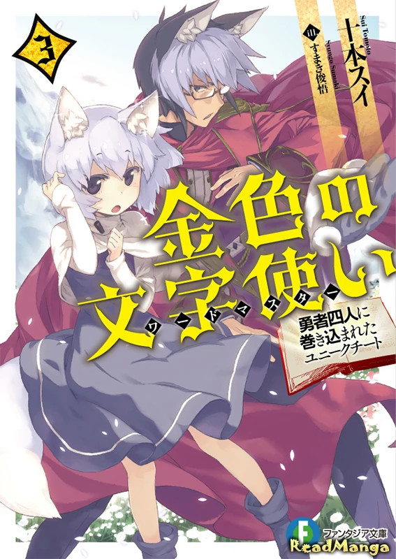 - 金色の文字使い 3 -勇者四人に巻き込まれたユニークチート- ---(20 tháng 11, 2014, ISBN 978-4-0407-0385-5)